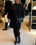 Klassisches schwarzes Kleid mit Laternenärmeln