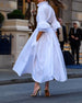 Kleid mode v-ausschnitt feste farbe nähte schlank