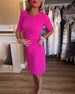 Modisches, einfarbiges, hüftumschließendes kleid mit langen ärmeln und rundhalsausschnitt