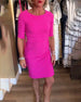 Elegantes, plissiertes Kleid in Volltonfarbe mit Rundhalsausschnitt