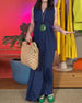 Modische hose in einfarbiger farbe mit unregelmäßigem patchwork und taschen