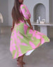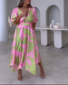 Elegantes, bedrucktes Kleid mit tiefem V-Ausschnitt und halben Ärmeln