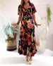 Elegantes bedrucktes Kurzarmkleid mit V-Ausschnitt
