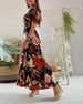 Elegantes bedrucktes Kleid mit V-Ausschnitt und Krawatte
