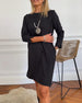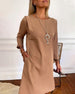 Einfarbiges kleid mit rundhalsausschnitt und langen ärmeln und tasche