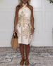 Elegantes bedrucktes Kleid mit V-Ausschnitt und Krawatte