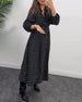 Lässiges kleid mit stehkragen und langen ärmeln und kordelzug
