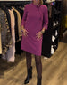 Einfarbiges kleid mit rundhalsausschnitt und langen ärmeln und tasche
