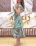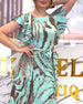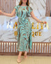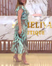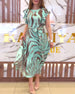 Kurzärmliges Schlitzkleid mit Blattmuster