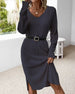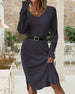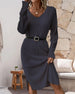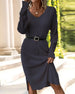 Elegantes Kleid mit V-Ausschnitt und langen Ärmeln
