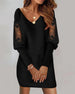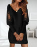 Elegantes Kleid mit V-Ausschnitt und getäfelter Spitze