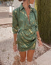 Kurzärmliges Schlitzkleid mit Blattmuster