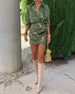 Elegantes bedrucktes Kleid mit V-Ausschnitt und Krawatte
