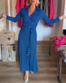 Elegantes bedrucktes Kleid mit V-Ausschnitt und Krawatte