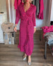 Kleid mode v-ausschnitt feste farbe nähte schlank