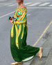 Elegantes, schulterfreies Maxikleid mit langen Ärmeln