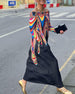 Kleid mit langen Ärmeln und Tasche im Farbblockdesign