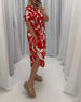 Elegantes bedrucktes Kleid mit V-Ausschnitt und Krawatte