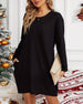 Einfarbiges kleid mit rundhalsausschnitt und langen ärmeln und tasche
