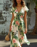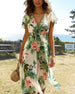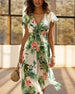 Kurzärmliges Schlitzkleid mit Blattmuster
