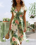 Elegantes bedrucktes Kleid mit V-Ausschnitt und Krawatte