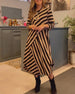 Elegantes bedrucktes Kleid mit V-Ausschnitt und Krawatte