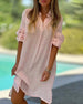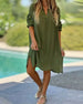 Hemdkleid Locker Kurzarm Einfarbig Baumwolle und Leinen