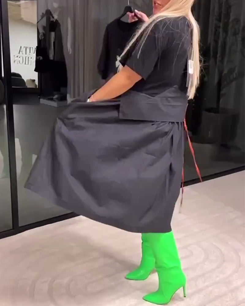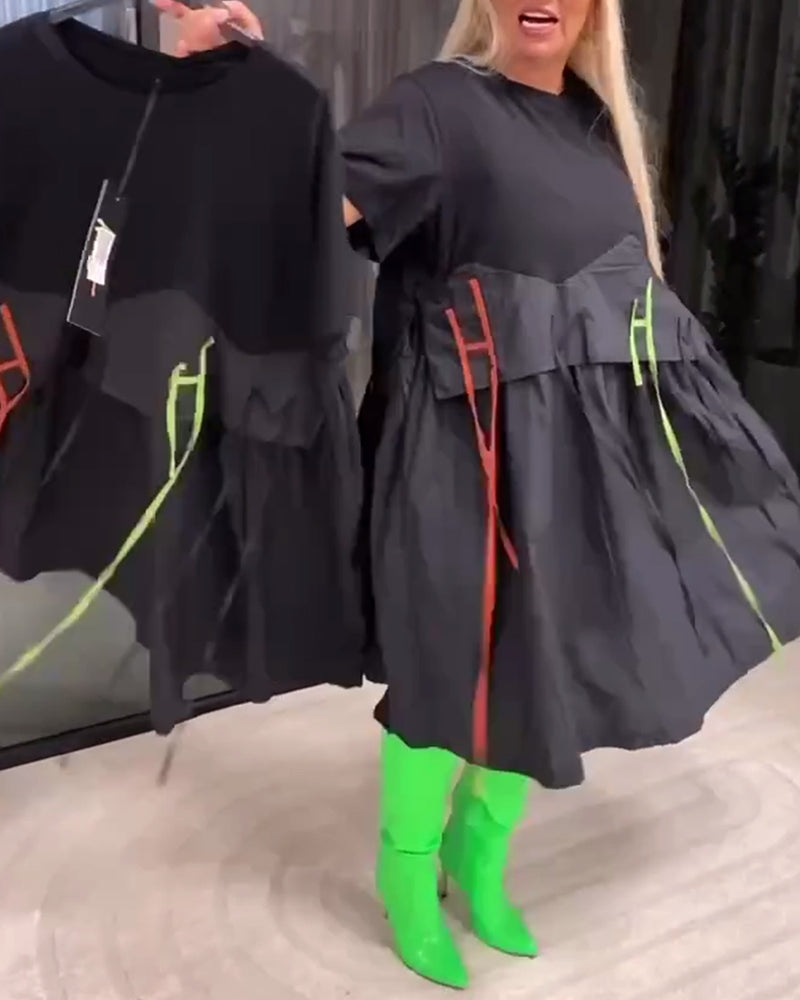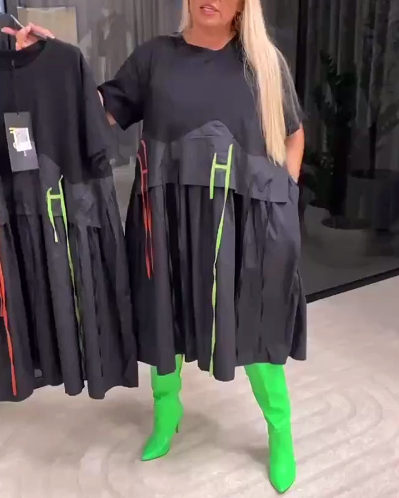 Kleid lässig Rundhals Schlitz Persönlichkeit Design