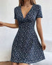Elegantes bedrucktes Kleid mit V-Ausschnitt und Krawatte
