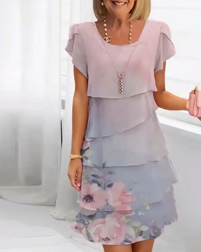 Lässiges bedrucktes Kleid mit kurzen Ärmeln