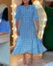 Lässiges, gepunktetes kleid mit rundhalsausschnitt