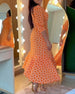 Elegantes bedrucktes Kleid mit V-Ausschnitt und Krawatte