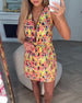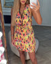 Lässiges Kleid mit V-Ausschnitt und Retro-Print