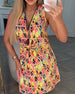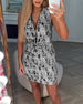 Elegantes bedrucktes Kleid mit V-Ausschnitt und Krawatte