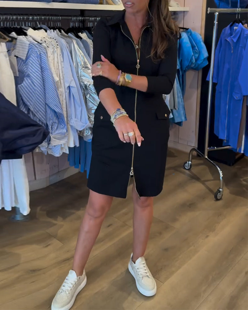 Kleid kragen einfarbig reißverschluss langarm