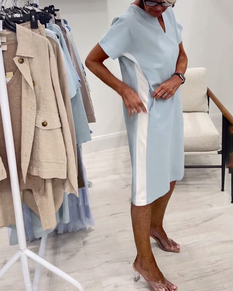 Kleid kurzärmelig Kontrastfarbe gerade