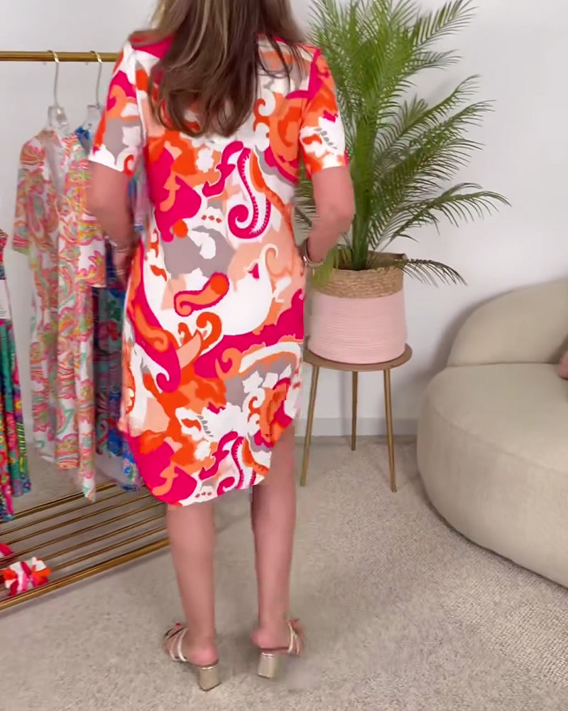 Lässiges bedrucktes Kleid mit kurzen Ärmeln