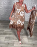 Elegantes bedrucktes Kleid mit V-Ausschnitt und Krawatte