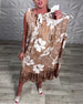 Kurzärmliges Schlitzkleid mit Blattmuster