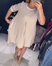 Freizeitkleid mit Rundhalsausschnitt, einfarbig und plissiert