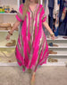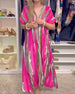 Elegantes bedrucktes Kleid mit V-Ausschnitt und Krawatte