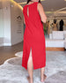 Kleid lässig V-Ausschnitt ärmellos einfarbig gespalten