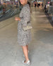 Modisches, langärmliges hüftkleid mit leopardenmuster