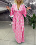 Elegantes bedrucktes Kleid mit V-Ausschnitt und Krawatte
