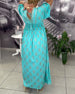 Kleid mit V-Ausschnitt und Laternenärmeln, schmal