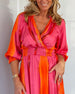 Kleid mit langen Ärmeln und Tasche im Farbblockdesign