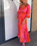 Elegantes bedrucktes Kleid mit V-Ausschnitt und Krawatte