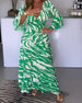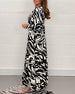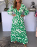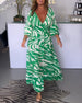 Elegantes bedrucktes Kleid mit V-Ausschnitt und Krawatte