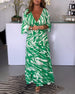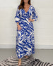Kurzärmliges Schlitzkleid mit Blattmuster