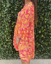 Bunt bedrucktes taschenkleid mit v-ausschnitt und halbarm